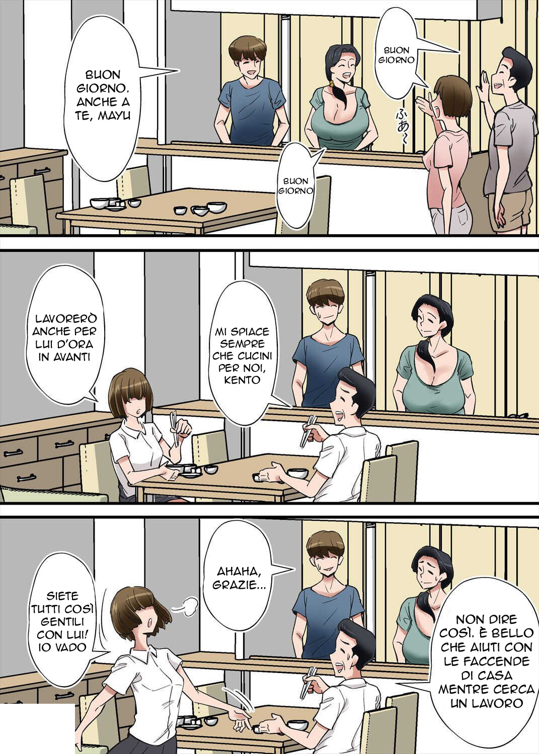 Scopri un appassionante hentai manga full color dove il tradimento e le dinamiche familiari si intrecciano. Segui le vicende di Kento, un giovane di 23 anni in cerca di lavoro, e sua moglie Mayu, una milf con enormi tette, mentre vivono con i genitori di lei. Tra tensioni e desideri nascosti, la storia esplora temi di libido e relazioni complicate, inclusa una gravidanza inaspettata.