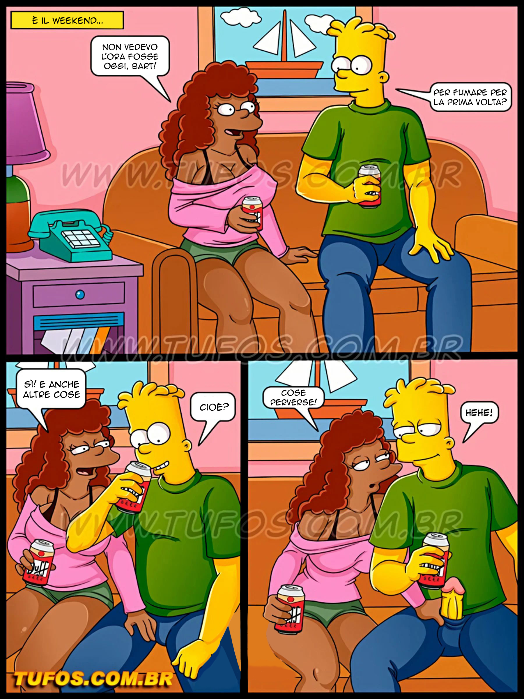 Esplora le avventure piccanti dei Simpson in un fumetto per adulti. Marge è coinvolta in situazioni intriganti, mentre Homer dorme ignaro. L’atmosfera si scalda in cucina con tensioni e tradimenti, mentre Marge confessa le sue fantasie pericolose con un agente. Scopri la passione sotto la lingerie, in una trama dove il confine tra realtà e desiderio si confonde.