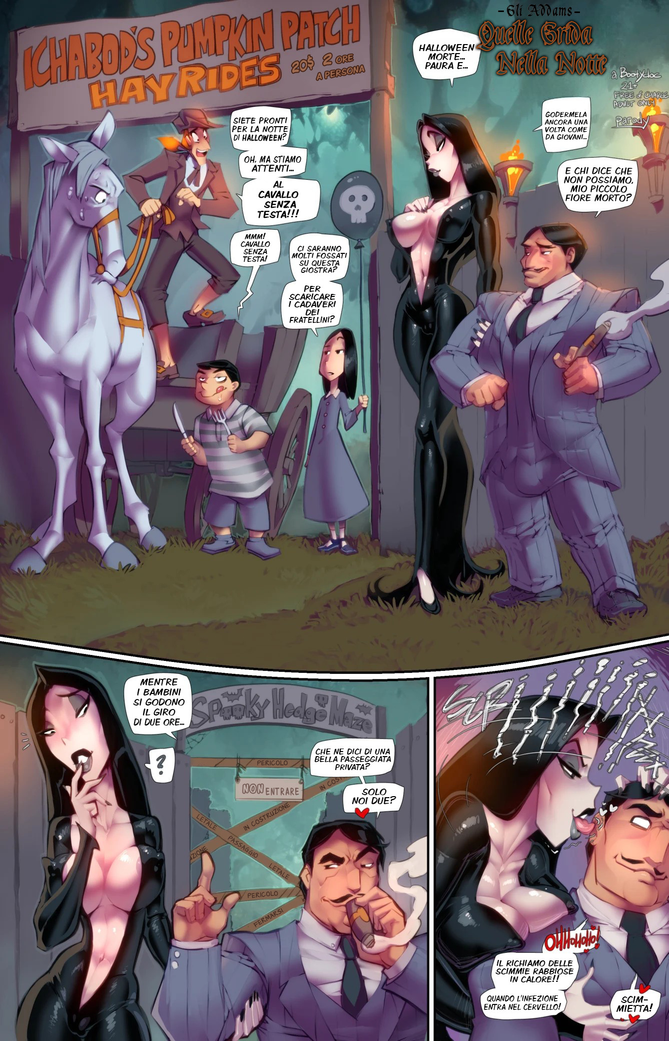 Scopri un’avventura di Halloween con una parodia piccante della Famiglia Addams. Mentre i bambini si godono un giro, i nostri protagonisti si preparano per una notte di passioni proibite. Tra giostre misteriose e incontri seducenti, l’attrazione tra i personaggi è irresistibile. Lasciati trasportare da un racconto di scoperte audaci e desideri segreti in questo fumetto per adulti gratuito.