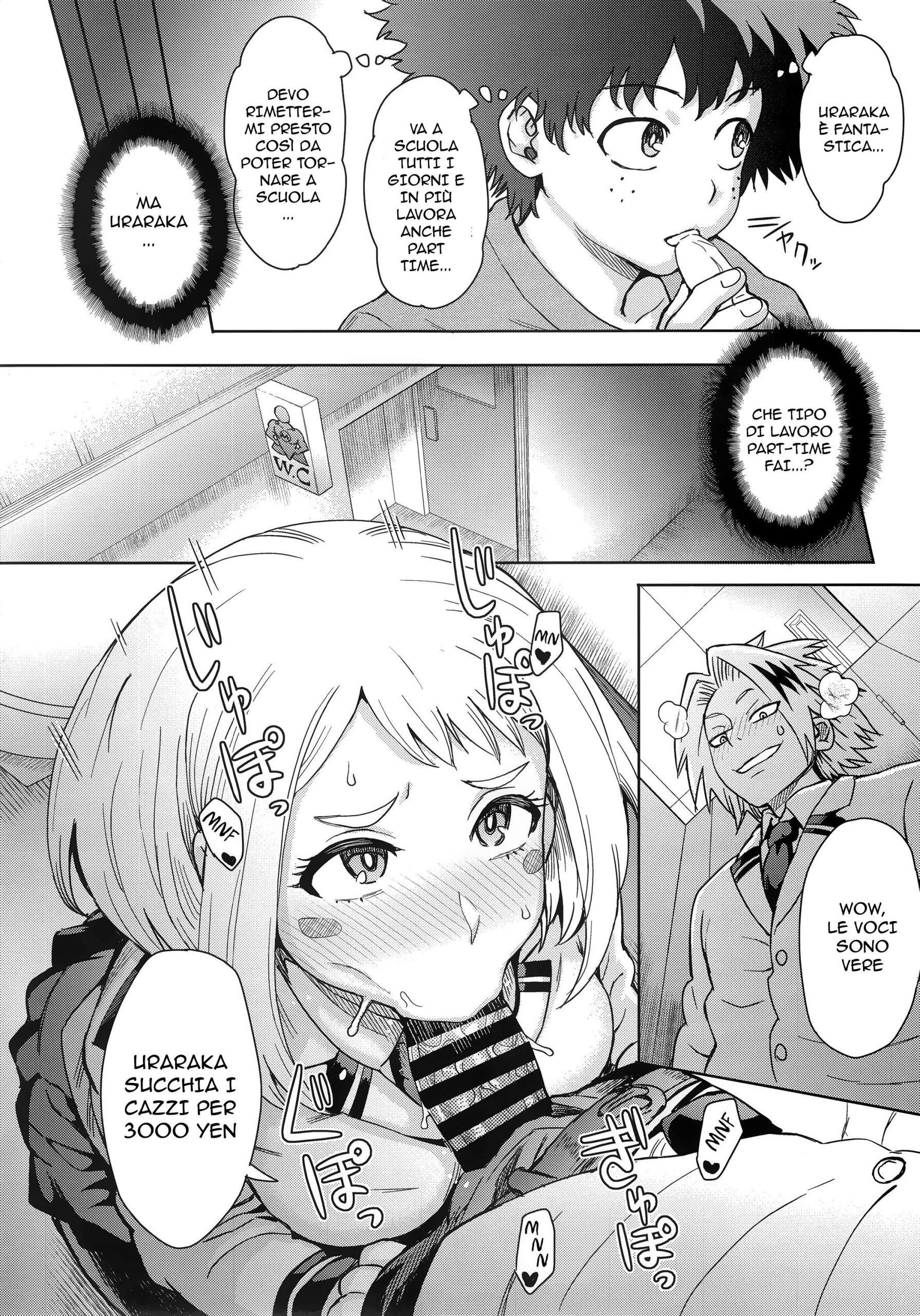 In un tumultuoso universo di My Hero Academia, la storia segue Uraraka mentre cerca di bilanciare la vita scolastica con un lavoro part-time segreto e non convenzionale per saldare i debiti familiari. Tra incontri con alien girls e dinamiche di harem, il fumetto esplora temi di fetish e rimming, mentre Uraraka si destreggia tra le pressioni scolastiche e le aspettative di diventare un’eroina…
